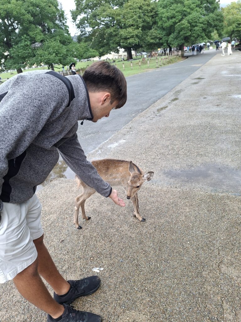 Eine Nacht, die ich so schnell nicht vergesse – leider im negativen Sinne. Über 20 Leute in einem Raum, Schnarchkonzert inklusive. Trotz Ohrstöpseln war an Schlaf kaum zu denken, also habe ich kurzerhand im Bad übernachtet. Trotzdem: Nara selbst war wunderschön. In einem riesigen Park laufen zahme Rehe frei herum, lassen sich füttern und verbeugen sich sogar – ein einmaliges Erlebnis.