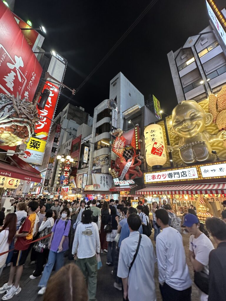 Wir haben viele Tempel besucht, das Schloss von Osaka bestaunt, sind durch die bunt leuchtende Innenstadt gelaufen und haben uns durch japanisches Essen probiert – Ramen, Sushi, Windbeutel, Käsekuchen. Da wir alles zu Fuß und mit öffentlichen Verkehrsmitteln gemacht haben, sind wir ordentlich gelaufen. Osaka hat mir unglaublich gut gefallen – modern, freundlich und architektonisch spannend. Besonders die Flughäfen, die auf künstlich angelegten Inseln gebaut wurden, sind beeindruckend. Da 80 % Japans aus Bergen besteht, wird jeder Quadratmeter genutzt.
