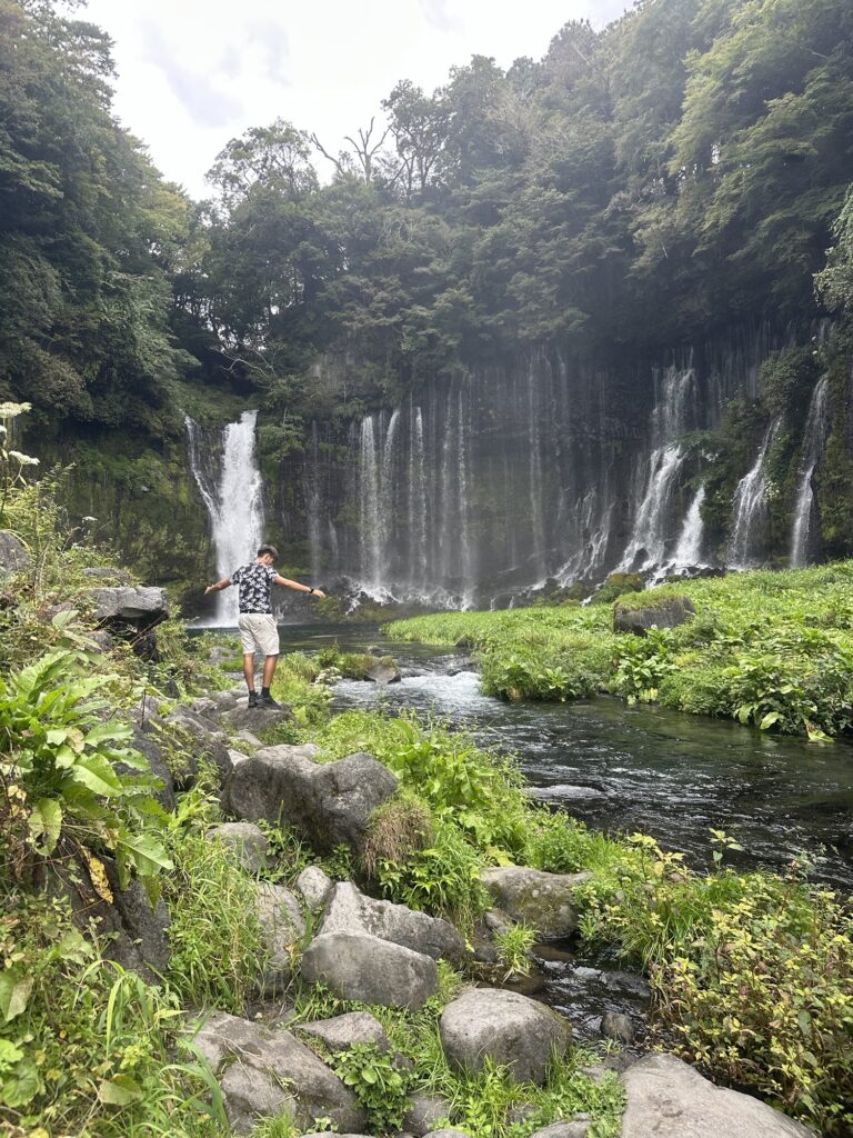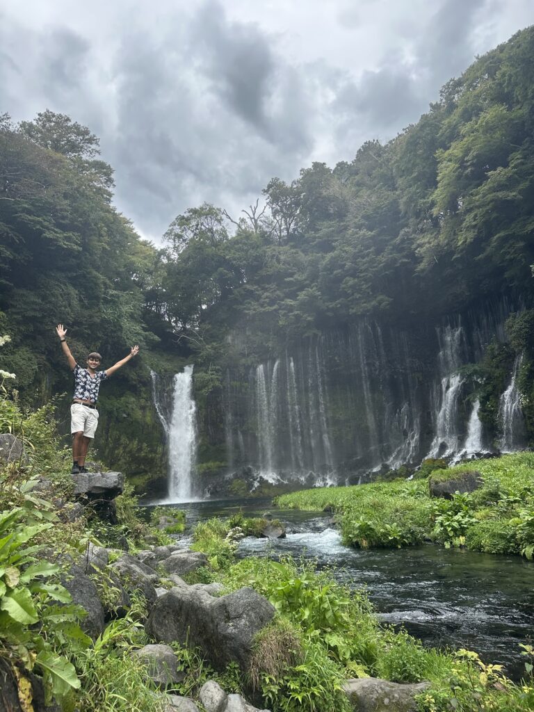 Am Abend angekommen, sahen wir den mächtigen Mount Fuji bei Sonnenuntergang – völlig wolkenfrei. Ein magischer Moment. Am nächsten Tag besuchten wir einen der schönsten Wasserfälle, die ich je gesehen habe, mussten dafür allerdings 1,5 Stunden Bus fahren. Danach zog der Fuji in die Wolken, später kam Regen. Trotzdem: ein großartiger Tag. Danach ging’s weiter nach Tokyo – mit dem Bullet Train, versteht sich – wo wir eine Freundin aus Thailand wiedersahen.