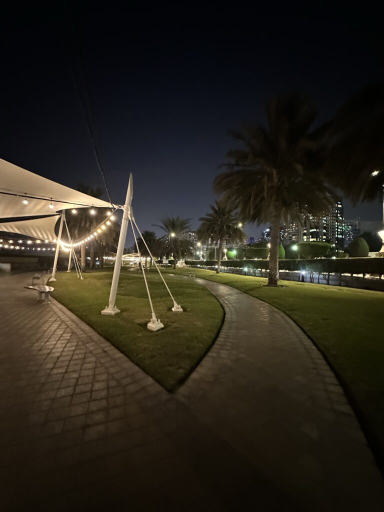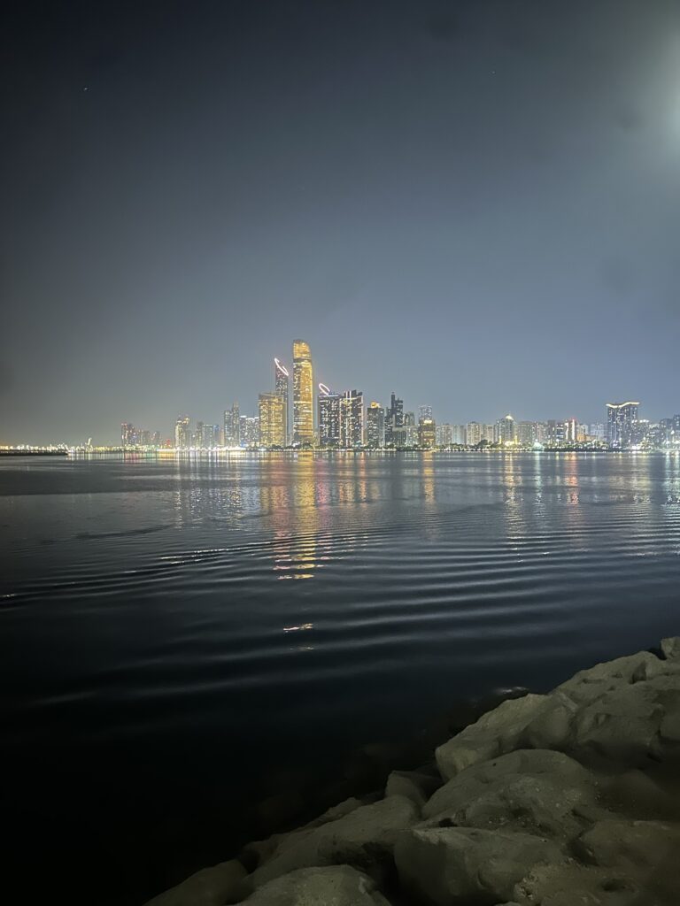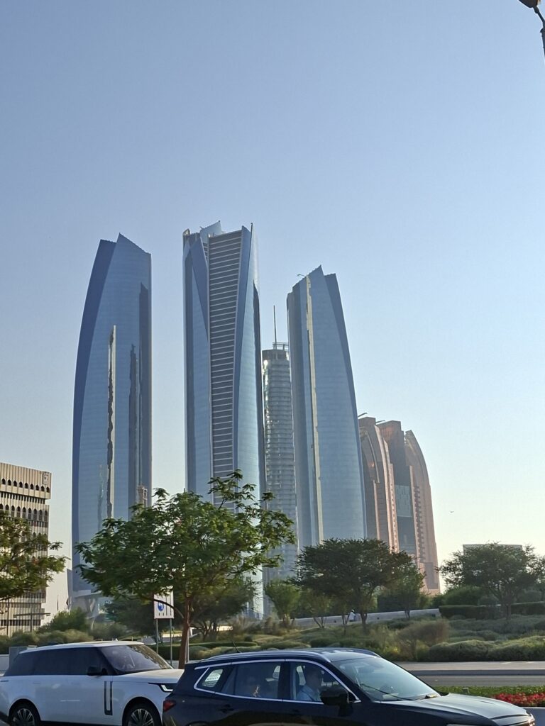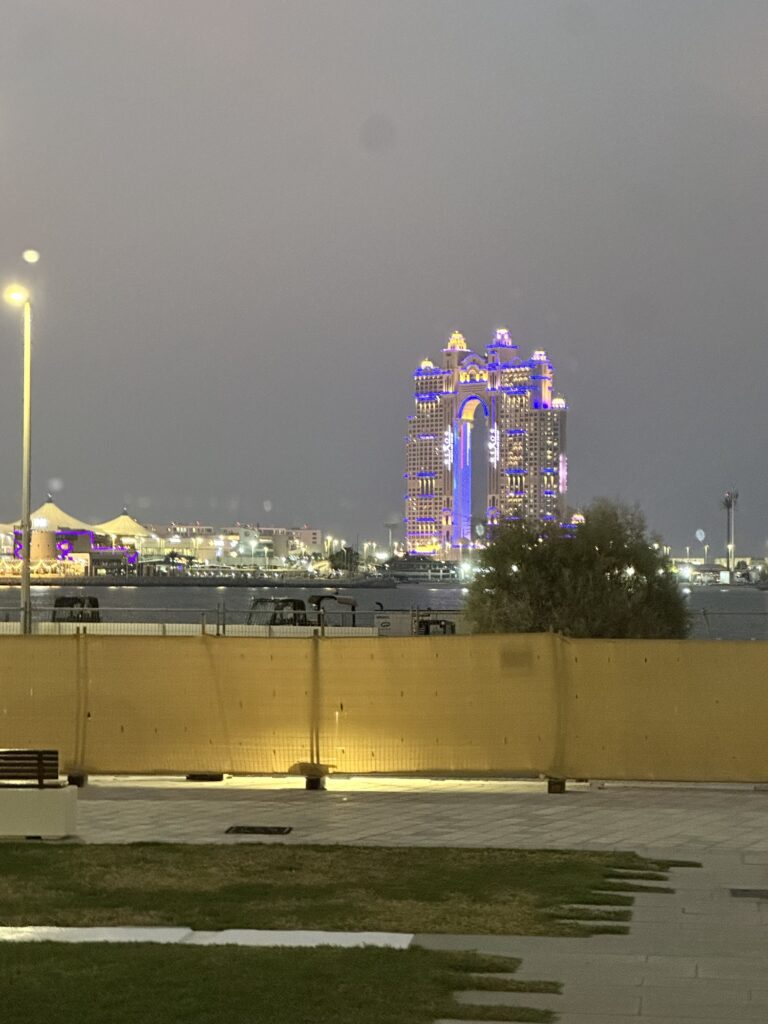 Abu Dhabi selbst hat uns gut gefallen. Wir haben abends von einer Halbinsel am Wasser aus die Skyline angeschaut – richtig eindrucksvoll. Die Stadt wirkt modern, sauber, geordnet. Gleichzeitig ist spürbar, wie streng und traditionell vieles noch ist. Es gibt schöne Ecken und große Hotels, aber insgesamt nicht extrem viel zu sehen.
